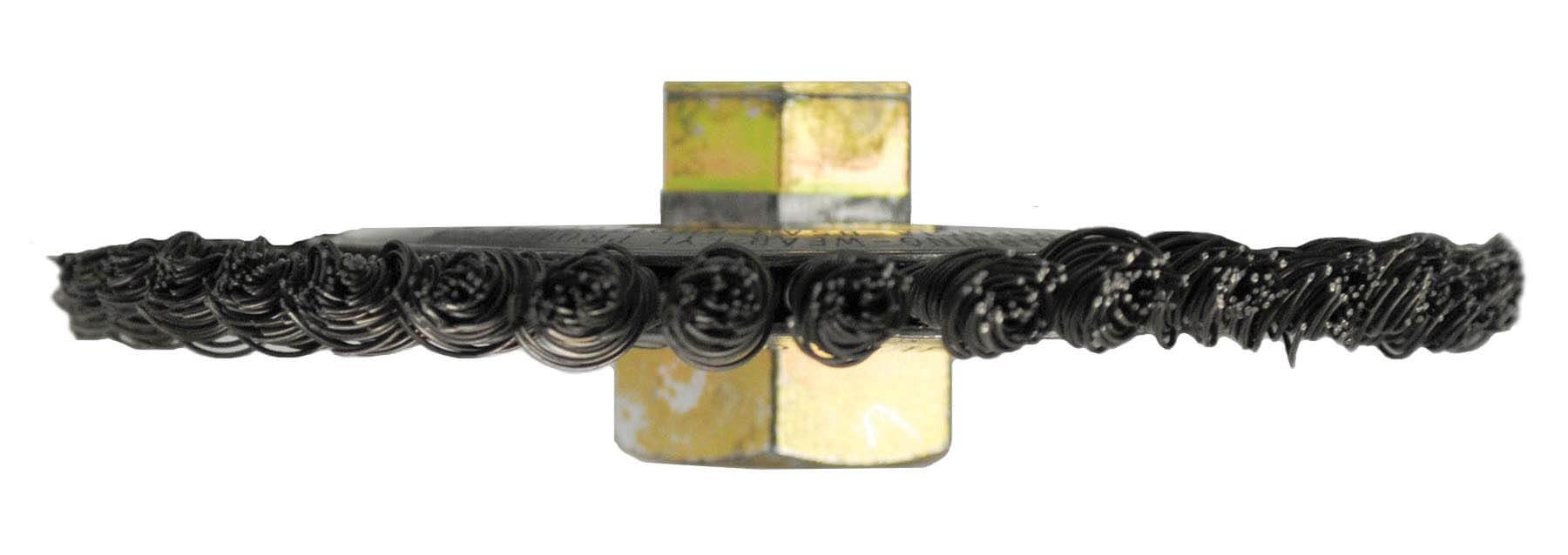 Beyond brush type, another feature to consider for long brush life is wire diameter. Thin wires are more flexible and more resistant to breakage but are not as aggressive. Thicker wires are stiffer and more aggressive but are more likely to break.