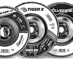 CRESCO, PA. — February 4, 2020 — Weiler Abrasives, a leading provider of abrasives, power brushes and maintenance products for surface conditioning, has expanded its Tiger® and Wolverine® flap disc offering. The expansion includes 4.5-inch high-density discs in a conical style (Type 29) and more options for metal fabrication professionals using 5 and 6-inch grinders.