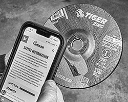 Some simple things to keep in mind include making sure the maximum rpm listed on the product is higher than the maximum rpm listed on the tool. Also, be sure the wheel fits under the tool guard that is installed on the grinder, and keep the guard on the grinder. Edge chipping or breaking can become a safety hazard if fragments fly off the wheel while it’s in use. The Tiger 2.0 wheel is formulated with anti-chip technology to extend wheel life and reduce the potential for edge chipping or breaking, allowing the wheel to wear down smoothly. In addition, QR codes on the wheels provide operators with instant access to safety information.