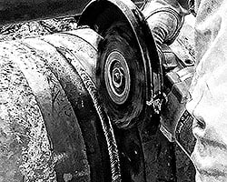 La vibración es otro desafío durante el desbaste de raíces de tuberías. Un disco que tiene mucho desprendimiento y vibración puede hacer que el brazo o la mano del operador se entumezcan con el tiempo, lo que crea un problema ergonómico. Demasiada vibración también puede hacer que rebote el disco fuera del bisel, y el operador puede dañar accidentalmente la tubería. Esto puede requerir una reparación costosa.