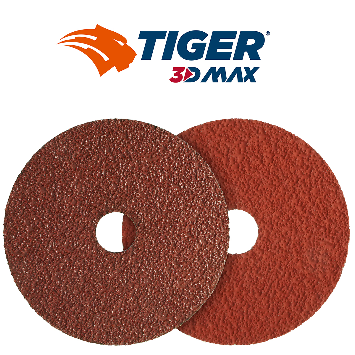 Los fibrodiscos Tiger 3D MAX Ceramic están disponibles en dos configuraciones: con o sin recubrimiento superior. Se recomienda el recubrimiento para acero inoxidable y otros metales difíciles de desbastar, ya que reduce la temperatura de desbaste, lo que ayuda a proteger las piezas del daño por calor y la decoloración. La opción sin recubrimiento es la mejor para el acero al carbón.